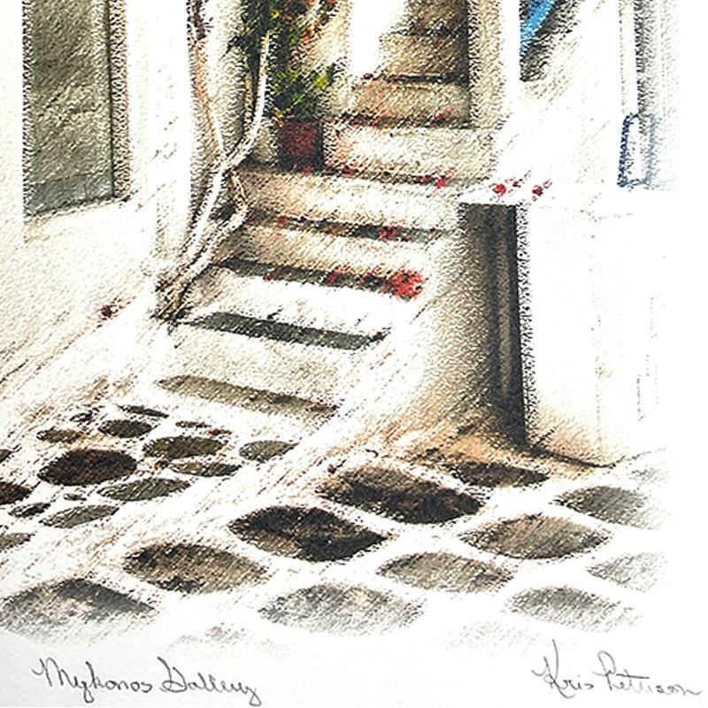 Mykonos Gallery by Peterson, Kris. "Mykonos Gallery" is a limited edition giclee on paper by Kris Peterson, numbered and hand signed by the artist. Includes letter of authenticity. Measures approx. 13" x 19" (image)