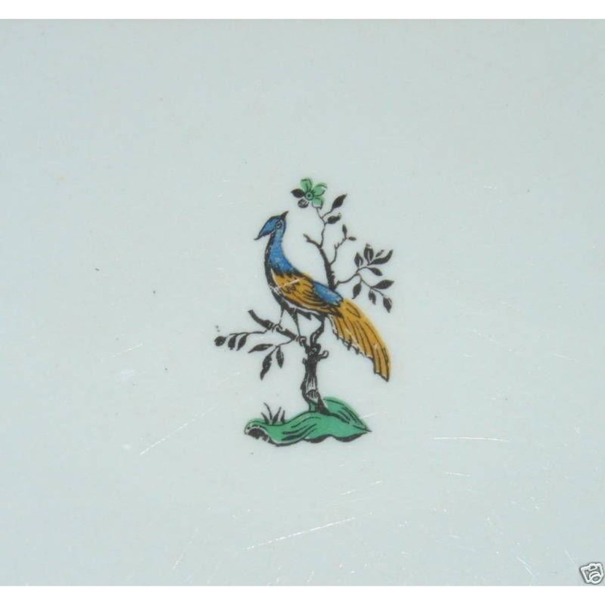 Myott & Sons Staffordshire platter. Wembley pattern, off white with center bird & fruit pattern at the rim. Predominant rim colors of blue & yellow. 12 3/8" L X 9 3/4" W