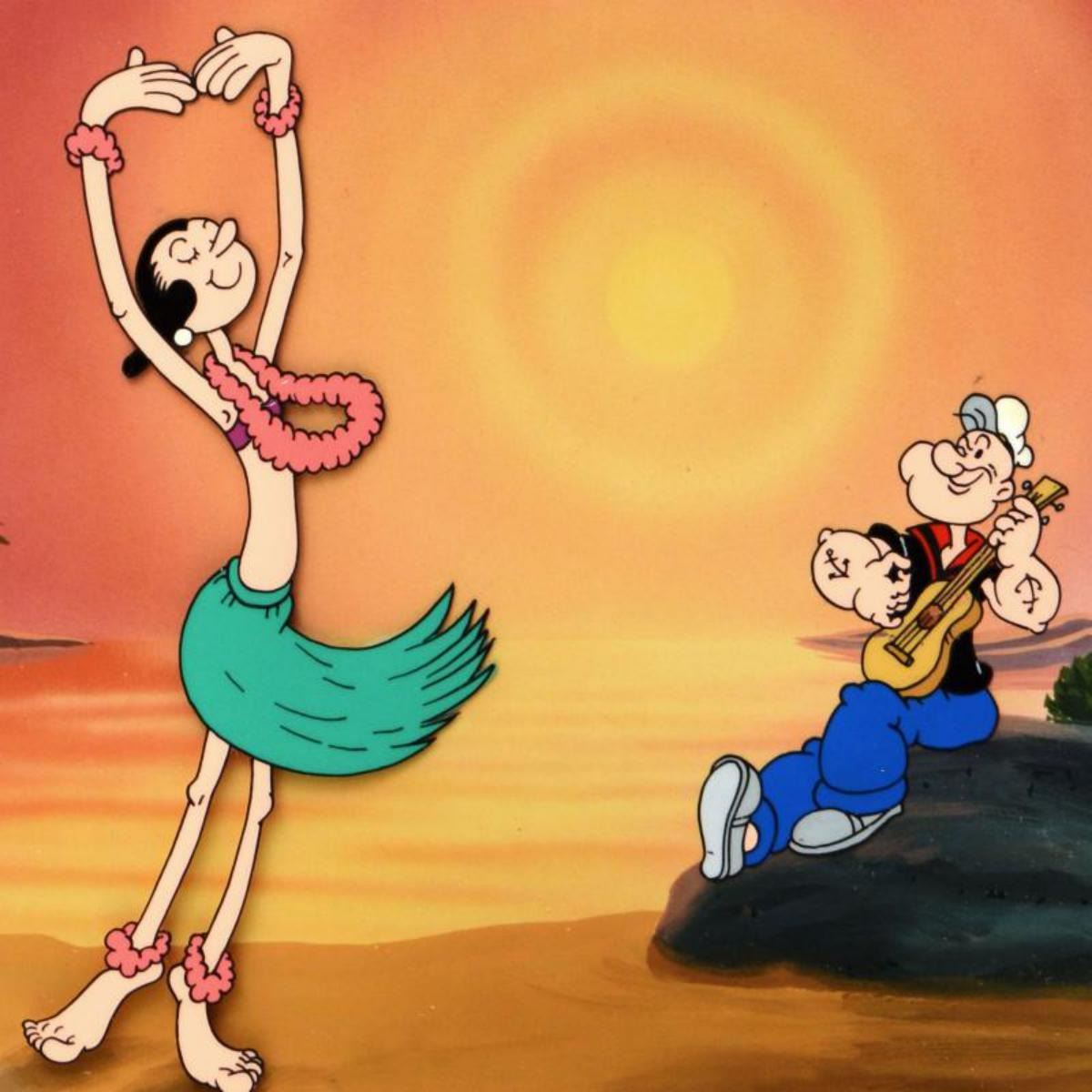 "Dancing on the Beach" is a limited edition hand inked and hand painted animation cel with background, numbered and hand signed by Myron Waldman (1908-2006). Includes Certificate of Authenticity! Measures approx. 14" x 12" (background with cel). Reference #: 217906.
