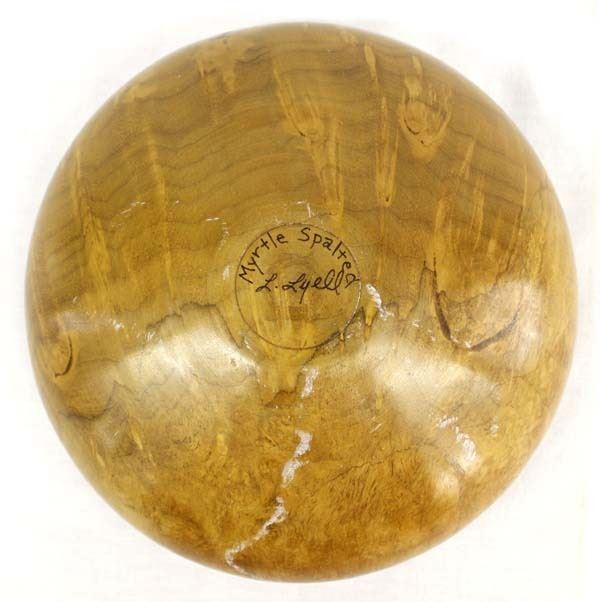 Myrtle Spalted Hand Turned Wood Bowl by Master Craftsman Lanny Lyell, measures 3'' x 7''D and is signed on the bottom
