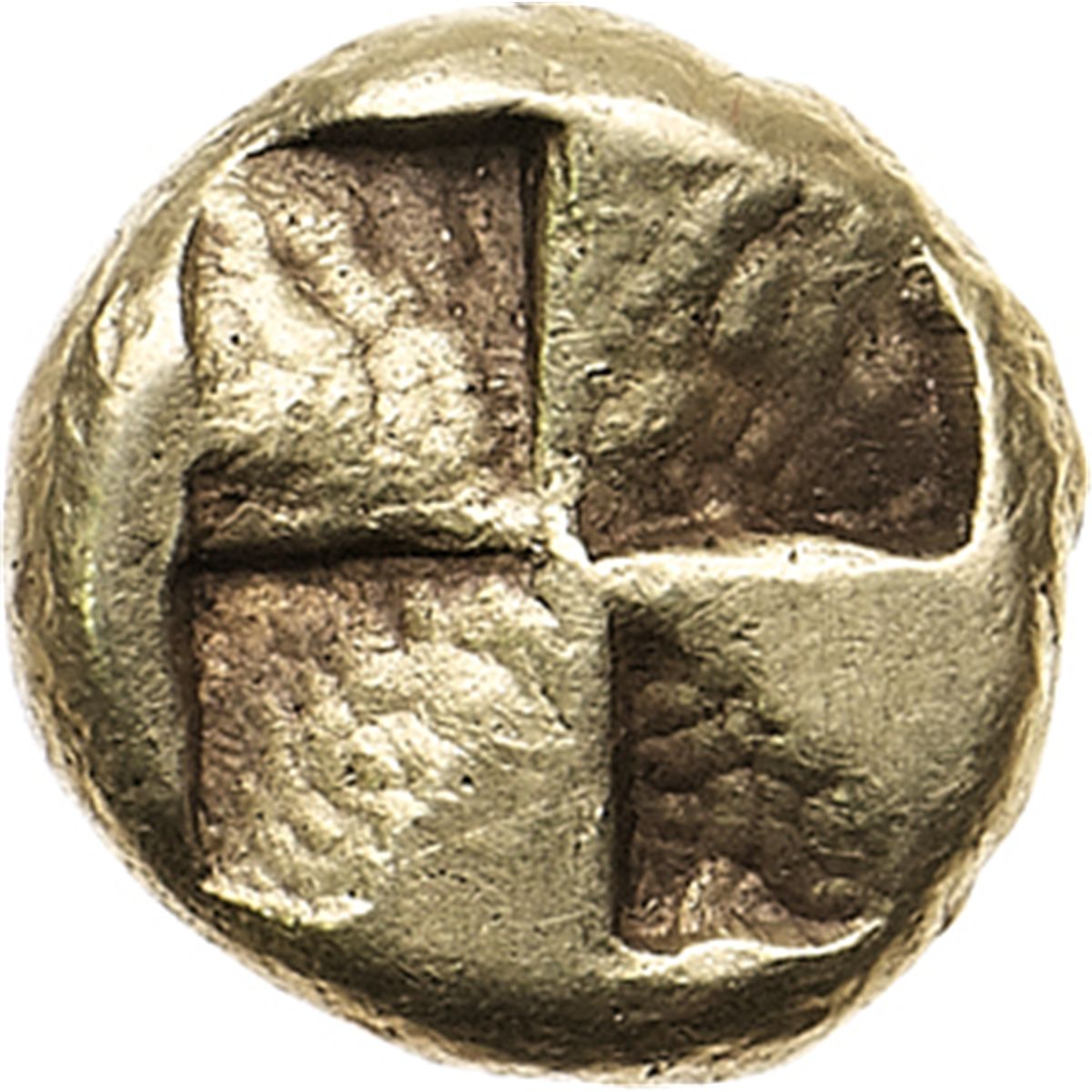 Mondo Greco. Asia Greca. Mysia, Kyzikos. Sesto di statere, 450-400 a.C. D/ Personaggio maschile (Kekrops) con coda di serpente tiene un ramo con la mano destra. Sotto, un tonno. R/ Quadrato quadripartito incuso. Grose -. BMC - (cfr. 15.27, 66 = statere). EL. g. 2.64 RRR. Bel BB+.