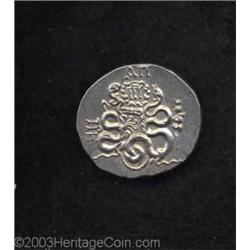 <TABLE cellSpacing=0 cellPadding=0 width="100%" bgColor=#000000 border=0><TBODY> <TR><TD width="100%"><TABLE cellSpacing=1 cellPadding=3 width="100%" border=0><TBODY><TR><TD width="100%" bgColor=#79735c><FONT face=arial color=#ffffff size=3><B>Description</B> </FONT></TD></TR><TR><TD width="100%" bgColor=#ffffff><FONT face=arial size=2><B>Mysia, Pergamon.</B></I> Ca. 75 B.C. AR cistophoric tetradrachm (27 mm, 12.45 g). Cista mystica with serpent; all within ivy wreath / Two serpents intertwined about bow-case with serpents; monogram in wreath above, monogram in left field, serpent-entwined thyrsos in right. F. S. Kleiner, "Hoard Evidence and the Late Cistophori of Pergamum," <I>ANSMN</B></I> 23 (1978), 26; Pinder 123. Lightly toned XF, choice. </FONT></TD></TR></TBODY></TABLE></TD></TR></TBODY></TABLE><BR><A name=PricesRealized></A><TABLE cellSpacing=0 cellPadding=0 width="100%" bgColor=#000000 border=0><TBODY><TR><TD width="100%"><TABLE cellSpacing=1 cellPadding=3 width="100%" border=0><TBODY><TR><TD width="100%" bgColor=#79735c><A name=PR><FONT face=arial color=#ffffff size=3><B>Previous Prices from Heritage Auctions</B> </FONT></A></TD></TR><TR><TD bgColor=#f6f6ed>No Prior Data Recorded </TD></TR><TR><TD bgColor=#ffffff><FONT face=arial size=1 ?>PLEASE NOTE: All prices realized reflect the final hammer price PLUS the buyer's premium in auctions that charge a buyer's premium. Each item has a notation at the top of the listing indicating whether that lot included a buyer's premium. Example: A item that sells with a final hammer price of $100 and a 20% buyer's premium will display with a price realized of $120. All information listed is intended to be as accurate as possible, but errors are possible. Please use this guide carefully and inform us of any inaccuracies. </FONT></TD></TR></TBODY></TABLE></TD></TR></TBODY></TABLE><BR><TABLE cellSpacing=0 cellPadding=0 width="100%" bgColor=#000000 border=0><TBODY><TR><TD width="100%"><TABLE cellSpacing=1 cellPadding=3 width="100%" border=0><TBODY><TR><TD width="100%" bgColor=#79735c colSpan=6><FONT face=arial color=#ffffff size=3><B>Price Guide*</B> </FONT></TD></TR><TR bgColor=#f6f6ed><TD align=middle><B>Grade</B> </TD><TD align=middle><B>Coin World<BR>(Trends)</B> </TD><TD align=middle><B>Numismedia<BR>Retail</B> </TD><TD align=middle><B>Numismedia<BR>Wholesale</B> </TD><TD align=middle><B>Coin<BR>Universe</B> </TD><TD align=middle><B>Heritage<BR>Value Index</B> </TD></TR><TR bgColor=#ffffff><TD colSpan=6><FONT size=1>*All information listed is intended to be as accurate as possible, but errors are possible. No item may be returned or refused based on this information which is provided as a service to our customers. You should contact each pricing source directly to determine the accuracy of this information. </FONT></TD></TR></TBODY></TABLE></TD></TR></TBODY></TABLE><BR><TABLE cellSpacing=0 cellPadding=0 width="100%" bgColor=#000000 border=0><TBODY><TR><TD width="100%"><TABLE cellSpacing=1 cellPadding=3 width="100%" border=0><TBODY><TR><TD width="100%" bgColor=#79735c><FONT face=arial color=#ffffff size=3><B>Population Guide</B> </FONT></TD></TR><TR bgColor=#ffffff> Important notice: Heritage usually auctions material at the rate of 200-250 lots per hour. On some occasions eBay Live bid software or the Internet may not be able to keep up with the pace of the auction. We recommend placing a realistic absentee bid now as insurance to avoid disappointment. Occasionally the auctioneer may eliminate or reject an eBay Live bid, and the auctioneer may also reopen a lot after the close of the eBay live bidding (usually because we missed an audience bid), and may reject your bid even if it shows you as the winning bidder. By bidding via eBay Live, you agree that Heritage may award the lot to another bidder at its sole discretion under the circumstances described above or any other reasonable circumstances. Also please note that all Heritage lots purchased through eBay Live carry a 20% Buyer's Premium. Please make sure you read the Terms and Conditions before you bid.</TD></TR></TBODY></TABLE></TD></TR></TBODY></TABLE>