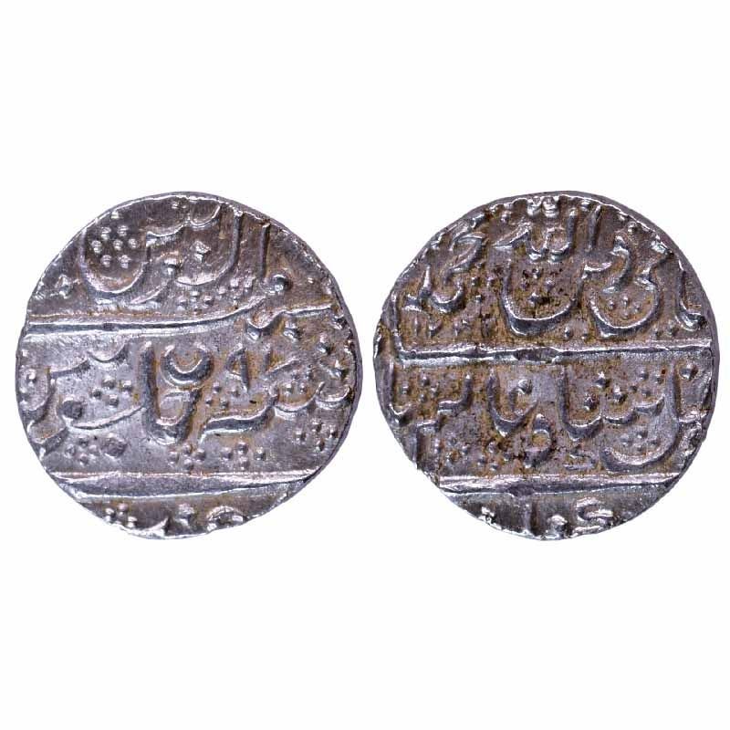 Mysore, Krishna Raja Wodeyar (AH 1225-1285, 1810-1868 AD), Silver Rupee, 11.42g, Mysore Mint, in the name of Shah Alam II, Frozen RY 97, crescent on rev. (KM C207).