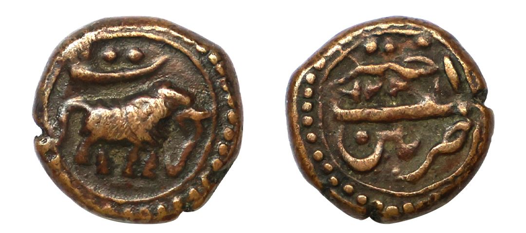 Mysore, Tipu Sultan (AM 1215-1227, 1787-1799 AD), Copper ¼ Paisa, 2.27 gms, AM 1226, Patan Mint, Obv. Elephant to the right with ‘Tey’ above, Rev. zarb patan akhtari and date below, very fine, very scarce.