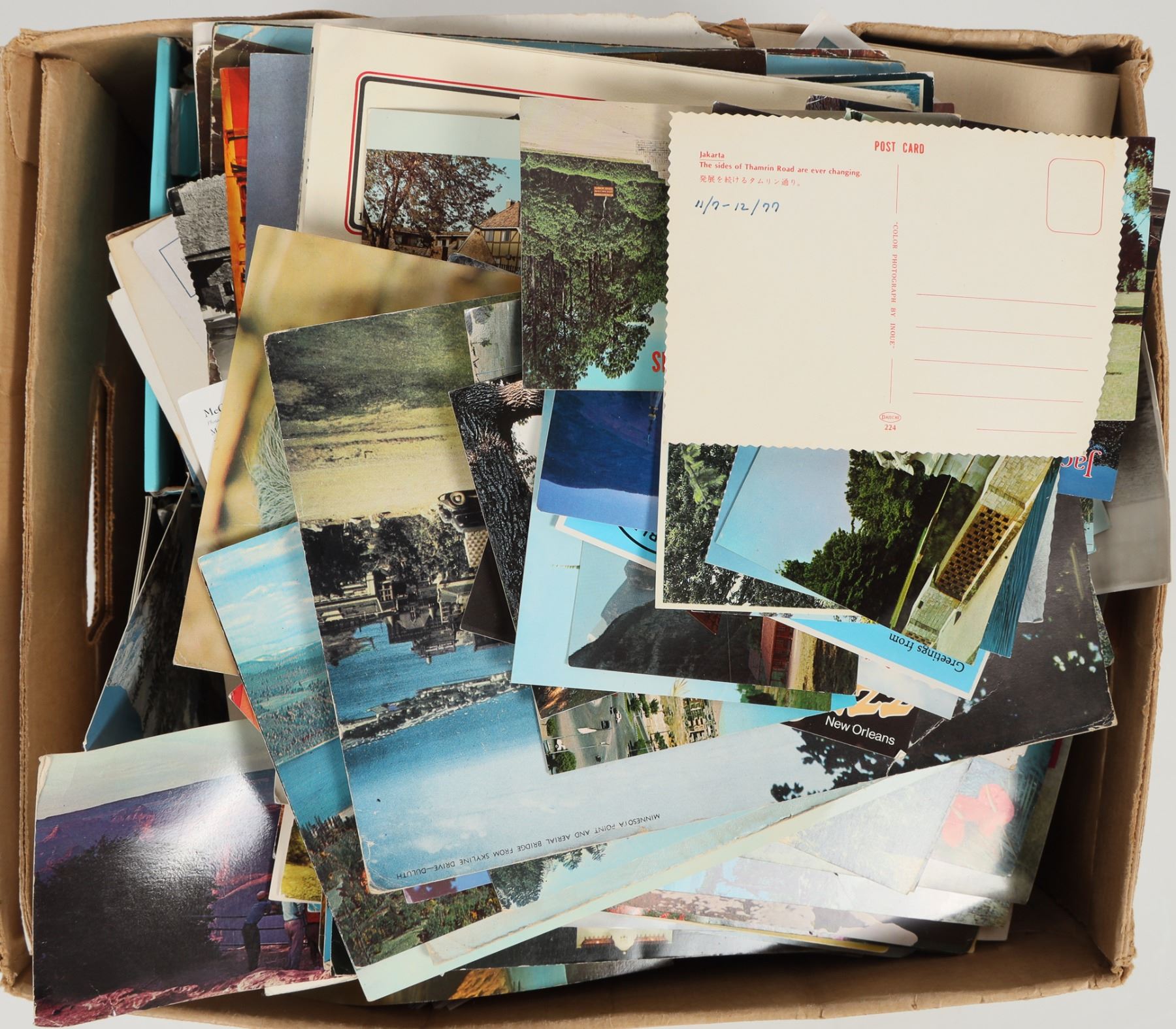 Stuffed full file box of mystery postcards from the Prag Collection. 5,000+ cards. All dates, places, topics. Not cherry picked. Postcard collector's bonanza!