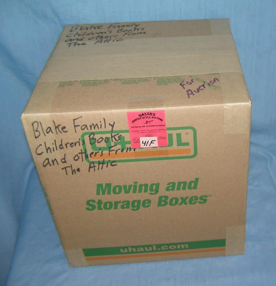 Moving and Storage Company mystery box lot marked Children's books and others from attic part of a moving and storage company seized or unclaimed merchandise group sent to auction for liquidation est. value $50.00-60.00
