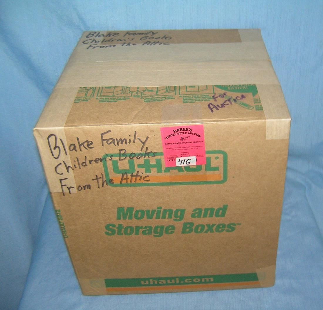 Moving and Storage Company mystery box lot marked Children's books from attic part of a moving and storage company seized or unclaimed merchandise group sent to auction for liquidation est. value $50.00-60.00