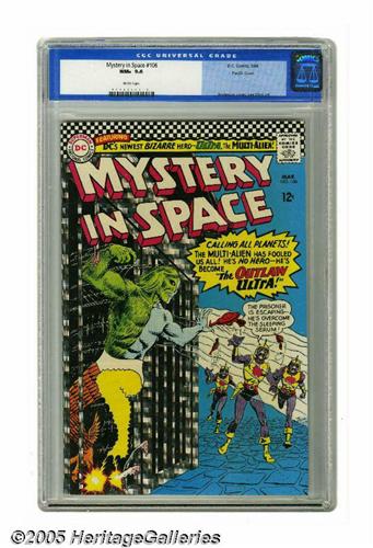 <B>Mystery in Space #106 Pacific Coast pedigree (DC, 1966) CGC NM+ 9.6 White pages.</B></I> Murphy Anderson cover with Lee Elias art. Highest grade yet awarded by CGC for this issue. Overstreet 2005 NM- 9.2 value = $55. CGC census 6/05: 2 in 9.6, none higher.