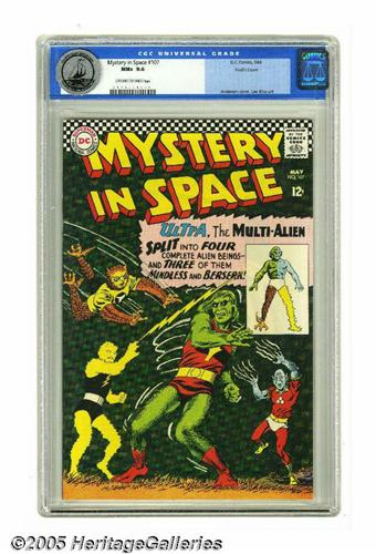 <B>Mystery in Space #107 Pacific Coast pedigree (DC, 1966) CGC NM+ 9.6 Off-white to white pages.</B></I> Murphy Anderson cover. Lee Elias art. Overstreet 2005 NM- 9.2 value = $55. CGC census 6/05: 2 in 9.6, none higher.