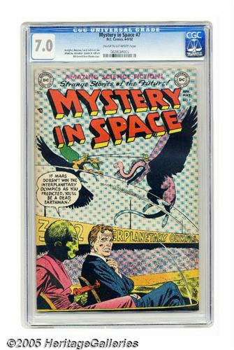 <B>Mystery in Space #7 (DC, 1952) CGC FN/VF 7.0 Cream to off-white pages.</B></I> Gil Kane cover. Alex Toth, Carmine Infantino, Murphy Anderson, and John Giunta art. Overstreet 2005 FN 6.0 value = $144; VF 8.0 value = $384. CGC census 3/05: 1 in 7.0, 6 higher.