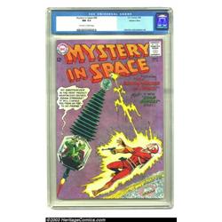Mystery in Space #83 Western Penn pedigree (DC, 1963) CGC NM 9.4 Off-white to white pages. Adam Strange is stunned on this Carmine Infantino/Murphy Anderson cover, and you'll be stunned when you see the impeccable quality of this copy. Just one specimen has received a higher grade from CGC at this writing. Overstreet 2003 NM 9.4 value = $120. Important notice: Heritage usually auctions material at the rate of 200-250 lots per hour. On some occasions eBay Live bid software or the Internet may not be able to keep up with the pace of the auction. We recommend placing a realistic absentee bid now as insurance to avoid disappointment. Occasionally the auctioneer may eliminate or reject an eBay Live bid, and the auctioneer may also reopen a lot after the close of the eBay live bidding (usually because we missed an audience bid), and may reject your bid even if it shows you as the winning bidder. By bidding via eBay Live, you agree that Heritage may award the lot to another bidder at its sole discretion under the circumstances described above or any other reasonable circumstances. Also please note that all Heritage lots purchased through eBay Live carry a 20% Buyer's Premium. Please make sure you read the Terms and Conditions before you bid.