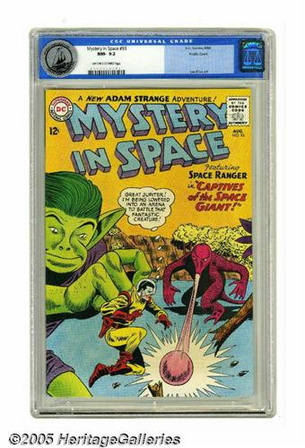 <B>Mystery in Space #93 Pacific Coast pedigree (DC, 1964) CGC NM- 9.2 Off-white to white pages.</B></I> Lee Elias art. Highest-graded copy from CGC for this issue to date. Overstreet 2005 NM- 9.2 value = $80. CGC census 3/05: 1 in 9.2, none higher.