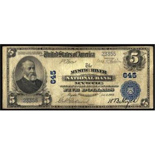 Mystic, CT. $5 1902 Plain Back. Fr 650. Ch#645. F