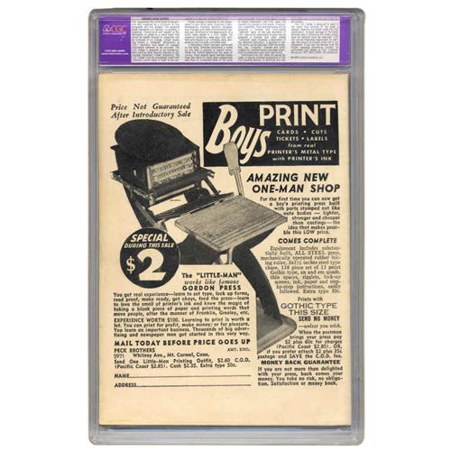 50. Since we cannot examine encapsulated notes or comics, they are sold "as is" without our grading opinion, and may not be returned for any reason. Auctioneer shall not be liable for any patent or latent defect or controversy pertaining to or arising from any encapsulated collectible. In any such instance, purchaser's remedy, if any, shall be solely against the service certifying the collectible.