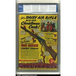 Mystic Comics #8 (Timely, 1942) CGC VF+ 8.5 Cream to off-white pages. On this incredibly violent cover a fair maiden in bondage is about to be impaled inside the iron maiden by a horrible looking creature. The Nazis have been sure to make their mark throughout this dungeon, just to make sure everyone knows exactly who is responsible for these atrocities. Al Gabriele is responsible for this insane cover, and Mike Sekowsky has provided interior art. Another point about this book is the fact that it is the highest ever graded by CGC. Overstreet VF 8.0 value = $1,364. Important notice: We expect to be auctioning lots at the rate of 200-250 per hour. Sometimes eBay Premier live bid software cannot keep up with that pace, so we strongly recommend that you place a realistic proxy bid now as insurance to avoid disappointment. Also please note that all Heritage/CAA lots purchased through eBay Premier carry a 20% Buyer's Premium.