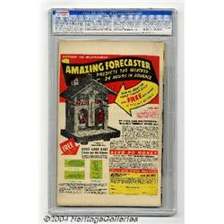 <B>Mystic Comics V2#3 (Timely, 1944) CGC VF- 7.5 Off-white pages.</B></I> If this bondage cover from the short-lived volume two of <B>Mystic</B></I> looks familiar, it's pretty much an, er, "encore presentation" of the cover of V1#1. The Angel is featured in two stories (one drawn by Sekowsky) with Tommy Tyme and the Destroyer the other features. Only three copies of this issue have been certified with higher grades by CGC to date. CGC notes, "Very minor amount of color touch on cover." Overstreet 2004 VF 8.0 value = $719. <BR><BR><B>Important notice:</B> Heritage usually auctions material at the rate of 200-250 lots per hour. On some occasions eBay Live bid software or the Internet may not be able to keep up with the pace of the auction. We recommend placing a realistic absentee bid now as insurance to avoid disappointment. Occasionally the auctioneer may eliminate or reject an eBay Live bid, and the auctioneer may also reopen a lot after the close of the eBay live bidding (usually because we missed an audience bid), and may reject your bid even if it shows you as the winning bidder. By bidding via eBay Live, you agree that Heritage may award the lot to another bidder at its sole discretion under the circumstances described above or any other reasonable circumstances. Since eBay bids are not shown to us until we open the lot on the floor, we treat those bids just like floor bids. In most cases the floor responds before the eBay bid is presented to us, due to Internet lag time, so for consistency we have made it a policy that floor bids are always considered first over tie eBay live bids. Also please note that all Heritage lots purchased through eBay Live carry a 20% Buyer's Premium. Please make sure you read the Terms and Conditions before you bid.