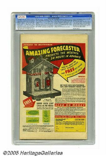 50. Auctioneer offers no opinion as to the validity of a grade assigned by any third-party grading service. Since we cannot examine C.G.A. encapsulated notes or Comics Guaranty Corporation (CGC) encapsulated comics, they are sold "as is" without our grading opinion, and may not be returned for any reason. Auctioneer shall not be liable for any patent or latent defect or controversy pertaining to or arising from any encapsulated collectible. In any such instance, purchaser's remedy, if any, shall be solely against the certification service certifying the collectible.