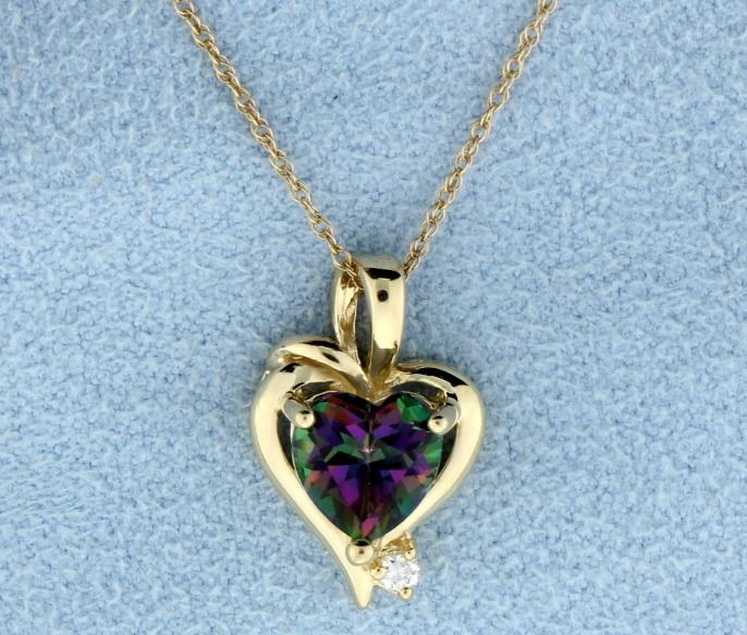 Heart mystic is 7mmx7mm. Chain is 18" and 10k. 2.1g