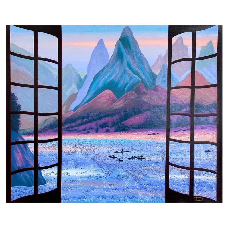 "Mystic Mountains" is a limited edition serigraph on canvas by Fanch AP numbered inverso and hand signed by the artist. Includes Letter of Authenticity. Measures approx. 23" x 27" (image). This proof came from Fanch Ledans personal collection. It may have some slight imperfections in the image and border but its overall condition was inspected and approved by him.