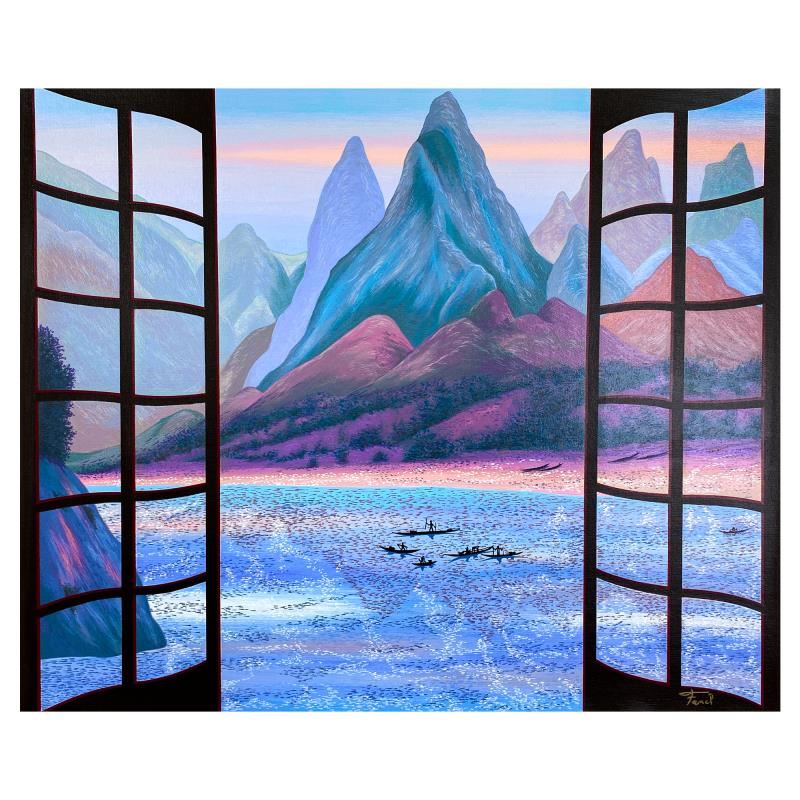 "Mystic Mountains" is a limited edition serigraph on paper by Fanch AP numbered and hand signed by the artist. Includes Letter of Authenticity. Measures approx. 25.5" x 30" (border) 23" x 27" (image). This proof came from Fanch Ledans personal collection. It may have some slight imperfections in the image and border but its overall condition was inspected and approved by him.