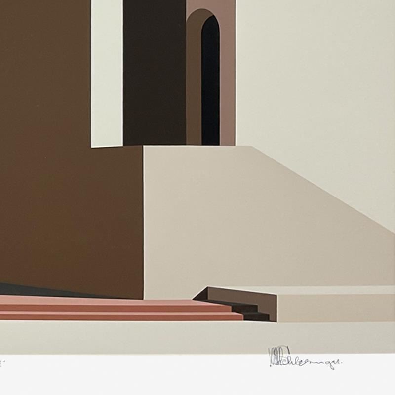 "Mystique" is a limited edition serigraph on paper by William Schlesinger (1915-2011), numbered 274/275 and hand signed by the artist. Includes Letter of Authenticity. Measures approx. 31" x 25.5" (border), 27" x 21" (image). Please note: There are minor imperfections on the image including a faint horizontal streak mark on the top-left, as well as faint scratches.