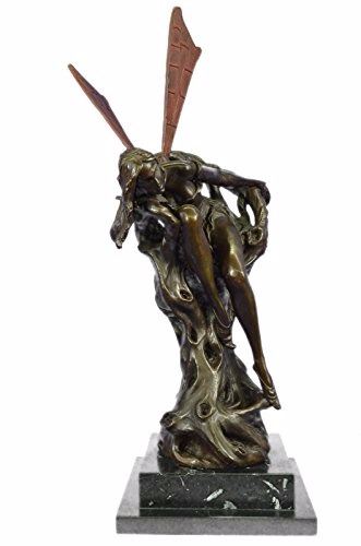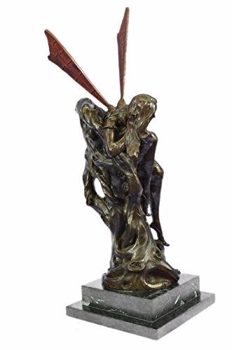 The Fairy Rests In Her Throne Deep In The Forest. Her Flutter Impatiently As She Awaits Her Next Adventure. She Rests But Her Joyous Mind Wonders To The Delights That Exist In Her World, The Flowers, The Scents, And The Beautiful Imagery. This Fun, And Enchanting Sculpture Wax Crafted Using The Lost Wax Method and It Stands On A Black Marble Base. Bronze dimensions with marble base: Height 23 X Width 10 inches. Weight: 30 lbs.