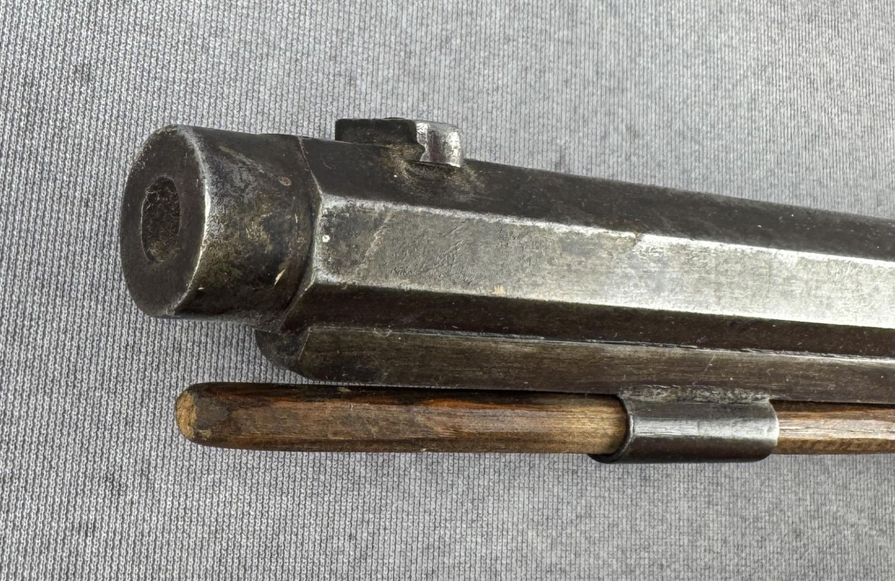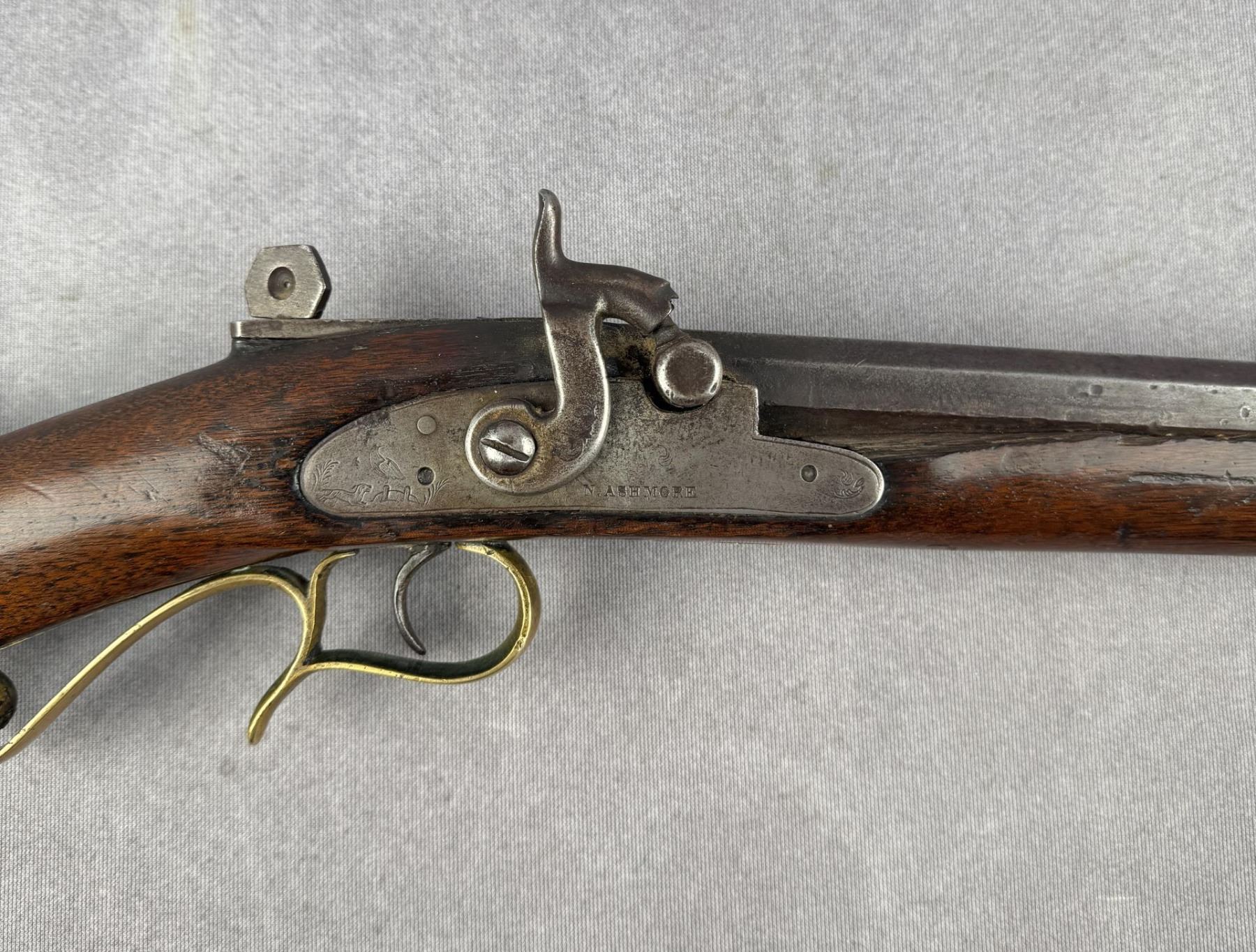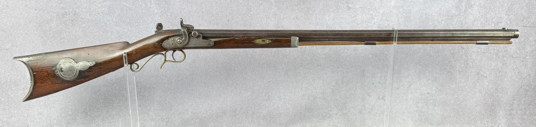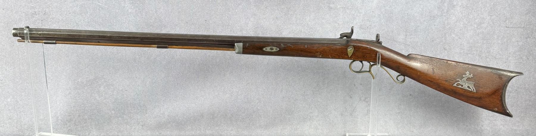 27 1/2" barrel. Black powder guns cannot be shipped to addresses in Hawaii, Illinois, Michigan, New Jersey & Rhode Island. No sales to these states, any bids from these states will result in immediate termination of your bidding account.