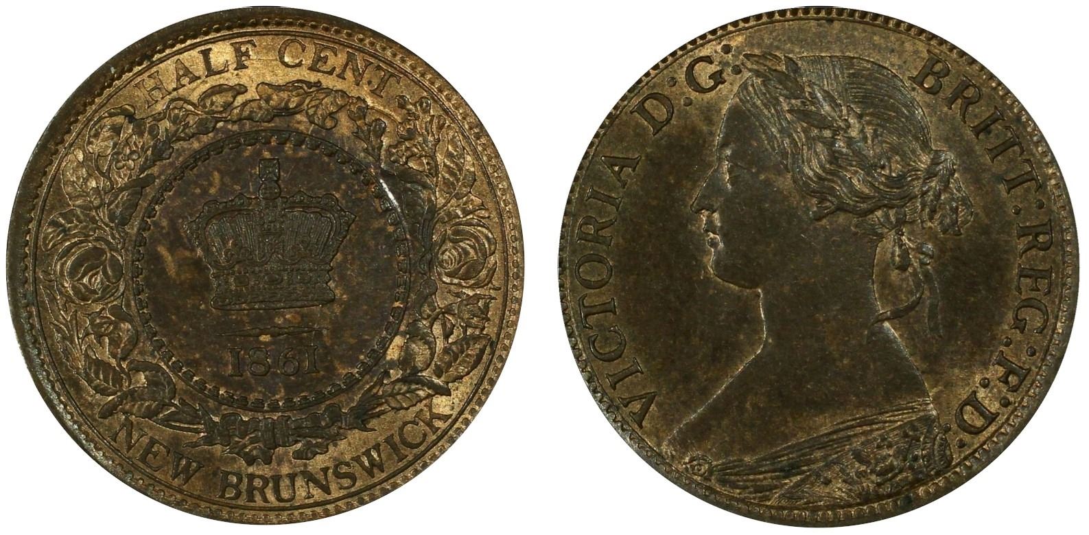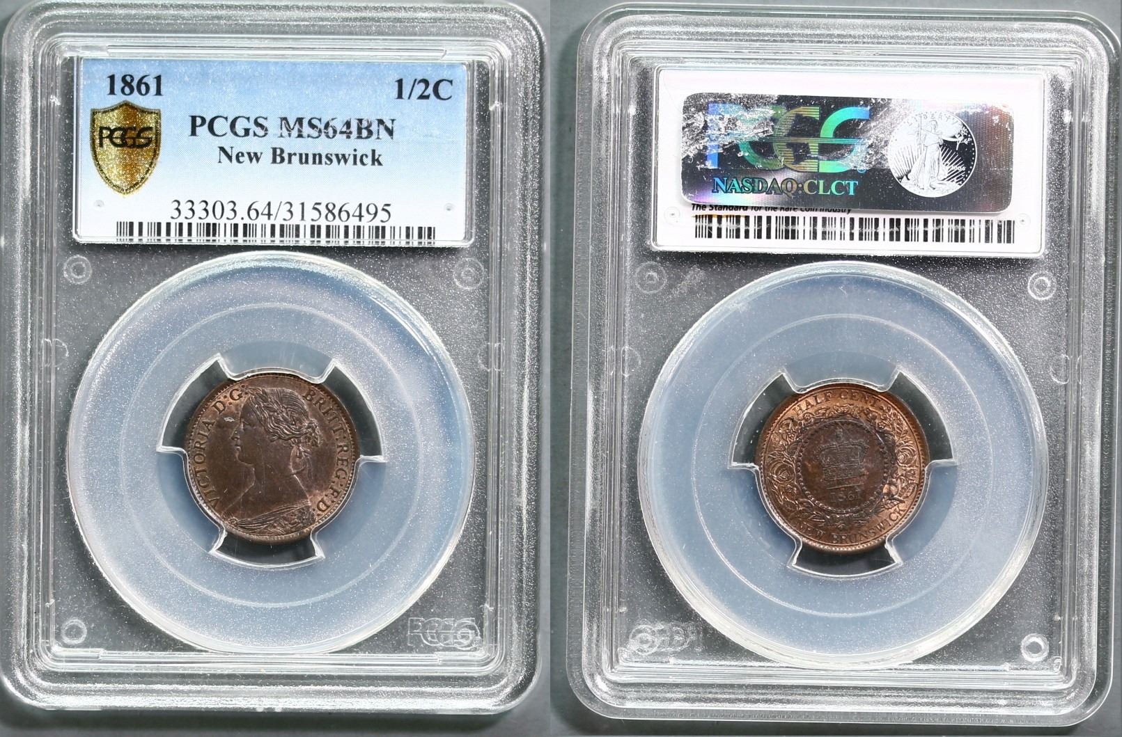 N.B. 1861 1/2¢ PCGS Choice Mint State-64BN 40% Red lustre. Choice example with superb reflective surfaces. The third best example seen and handled by TCNC.