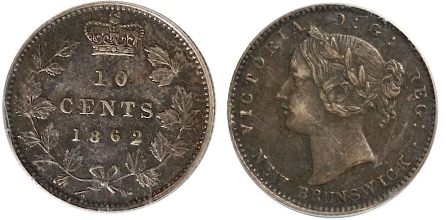 N.B. 1862 10¢ "Dbl 2" PCGS Choice Extra Fine-45