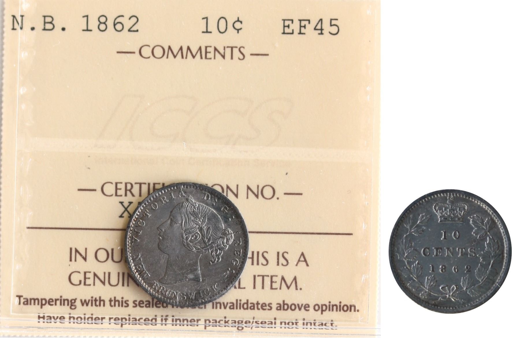 N.B. 1862 10¢ ICCS Choice Extra Fine-45