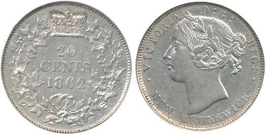 N.B. 1862 20¢ PCGS AU53. White issue with light lustre.