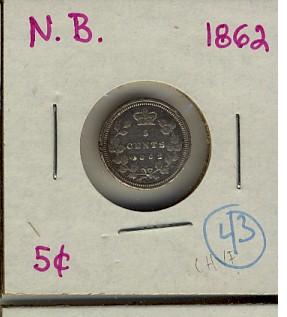 N.B. 1862 5¢ Choice VF-20, some edge bumps.