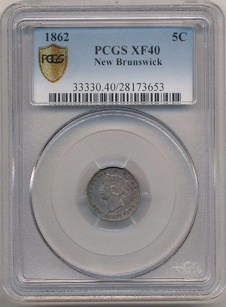 N.B. 1862 5¢ PCGS XF40. Strong reverse date. Nice for grade.