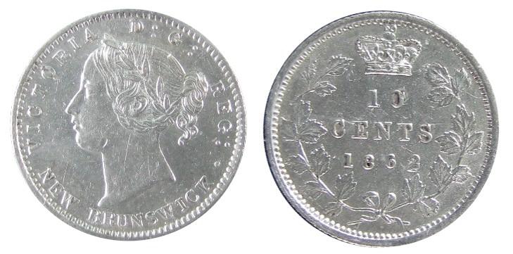 N.B. 1862 DP 2 10¢ ICCS EF45, brilliant and lustrous. Scarce.