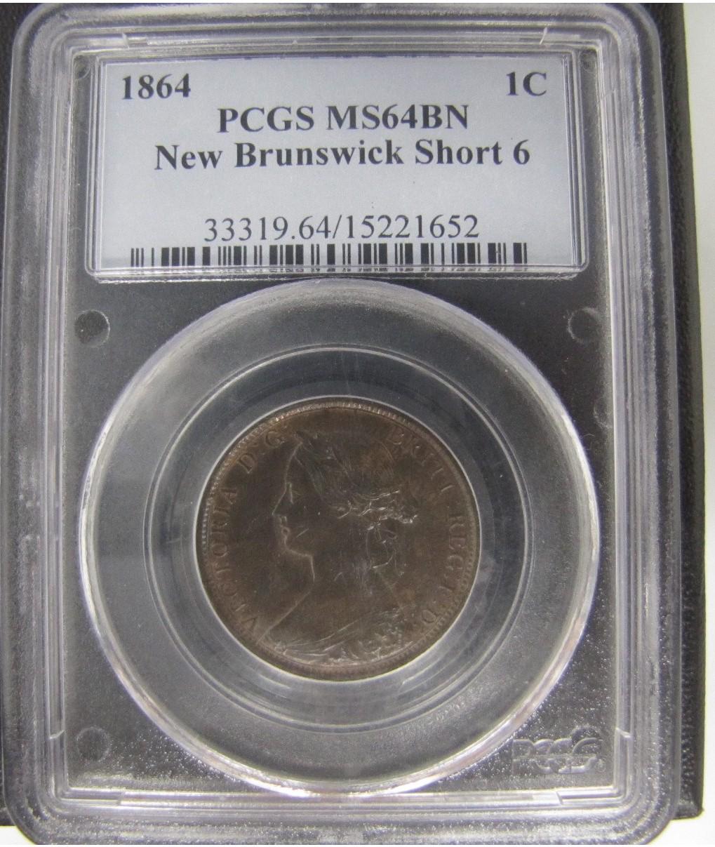 N.B. 1864 1¢ Short 6 PCGS MS64BN.