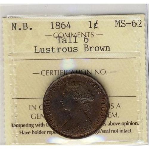 N.B. 1864 1¢ Tall 6 ICCS MS62. Lustrous Brown.