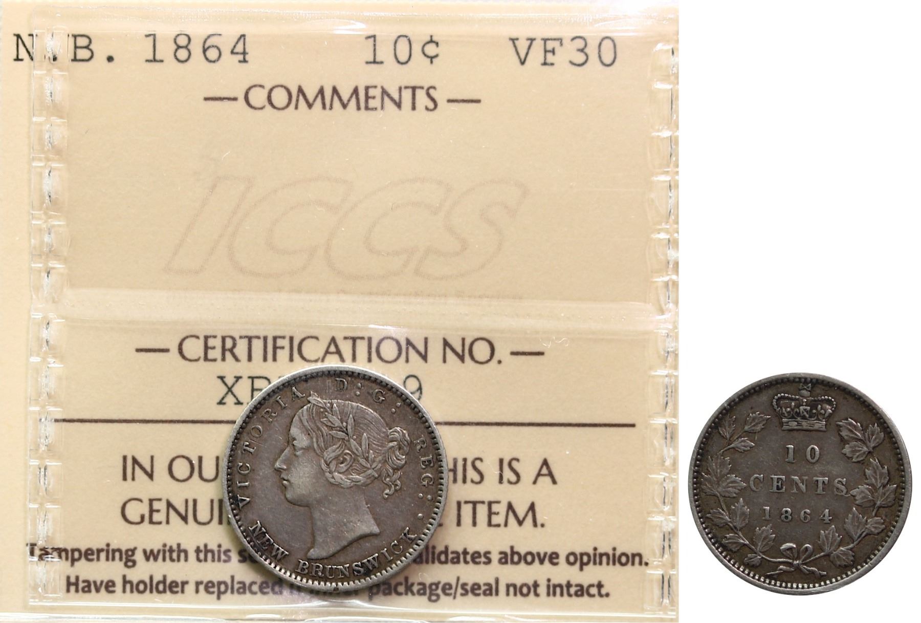 N.B. 1864 10¢ ICCS Choice Very Fine-30