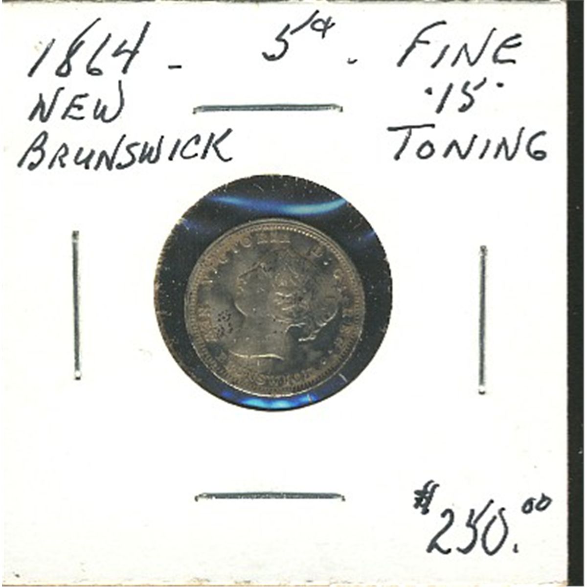 N.B. 1864 5¢ F15 with spotty colour. (PBA).