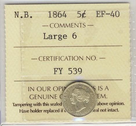 N.B. 1864 5¢ Large 6 ICCS EF40.