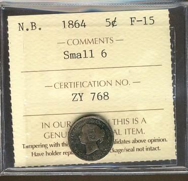 N.B. 1864 5¢ Sml 6 ICCS F15.