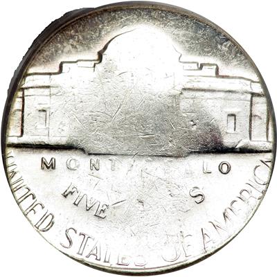 N/D. Jefferson Nickel. PCGS graded AU-50. Struck on a Silver Dime planchet.