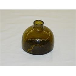 N.E. OLIVE AMBER EMBOSSED INK DE HALSEY PATENTE (3" T X 3 1/4" D), PONTIL (POSSIBLY FRENCH)