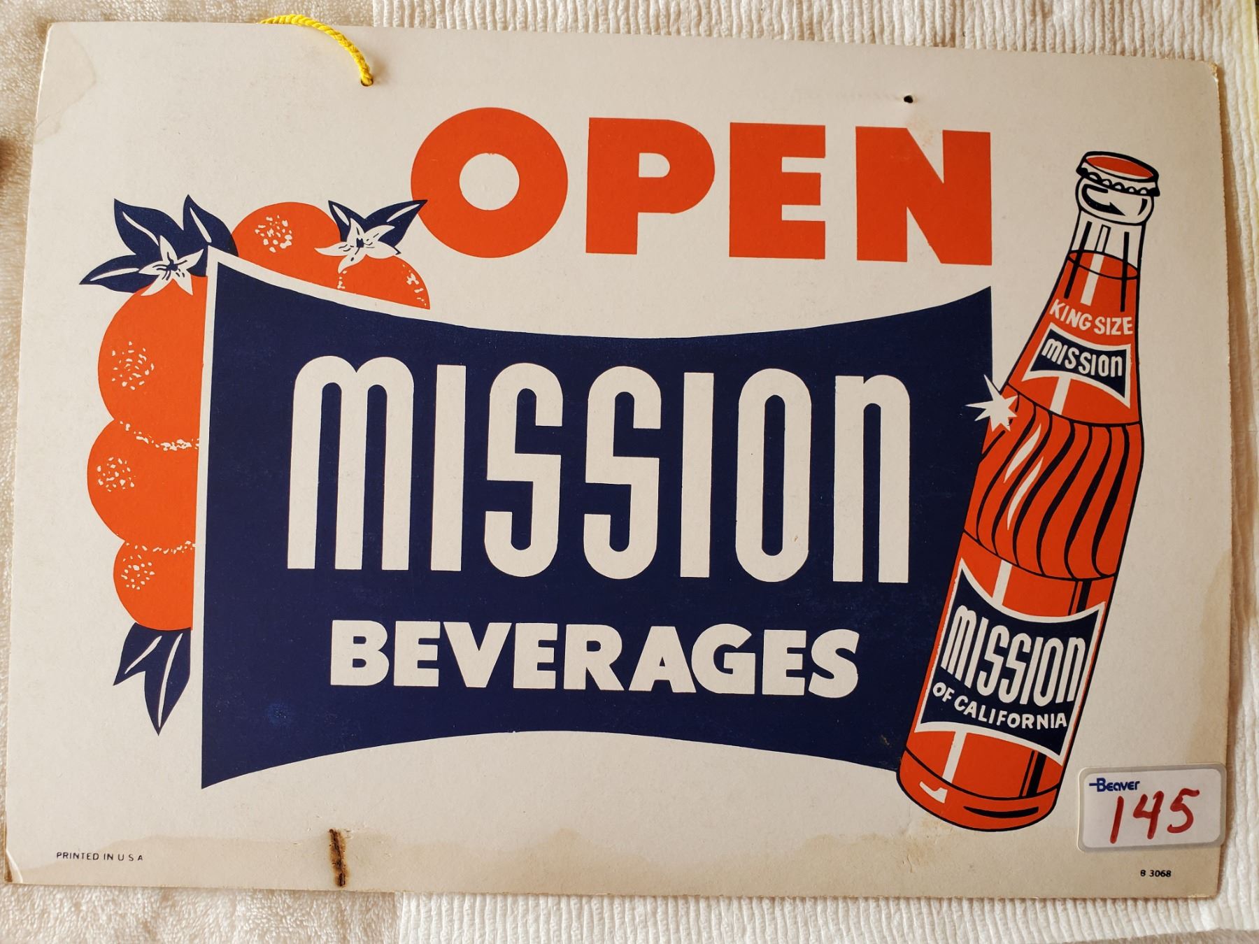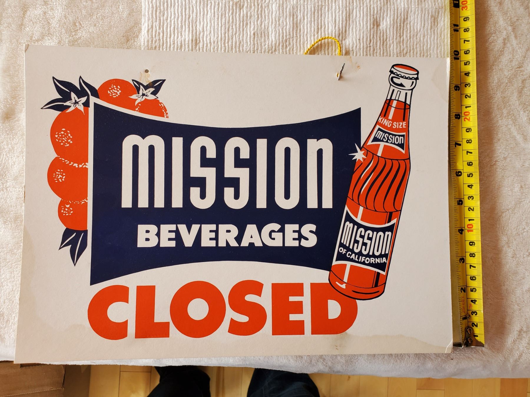 N.O.S. MISSION ORANGE OPEN/CLOSED DOUBLE SIDED SIGN- SLIGHT WATER STAIN