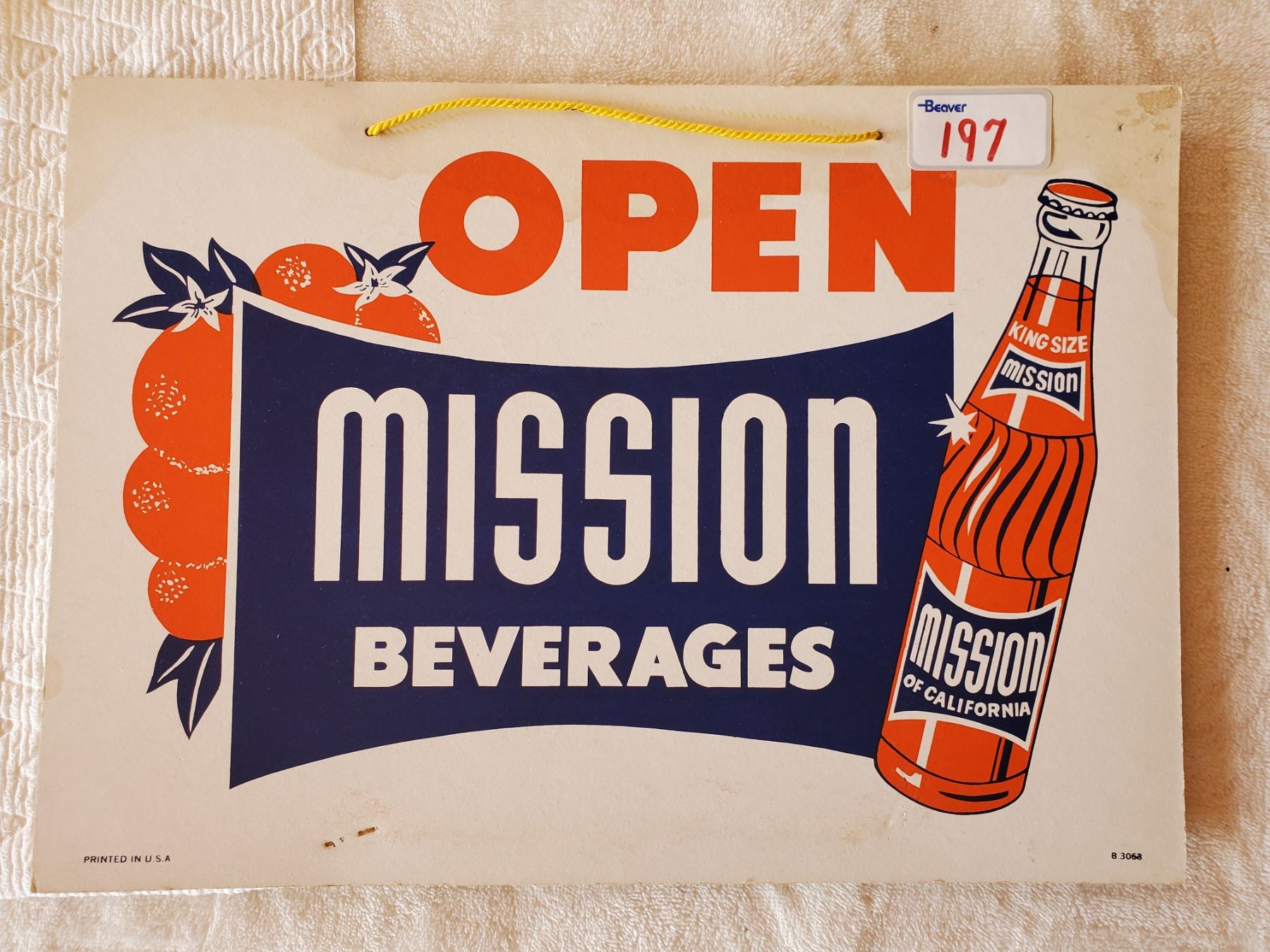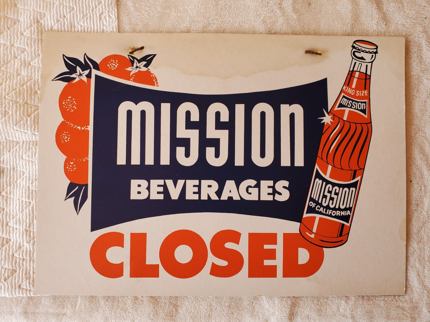 N.O.S. MISSION ORANGE OPEN/CLOSED DOUBLE SIDED SIGN- SLIGHT WATER STAIN