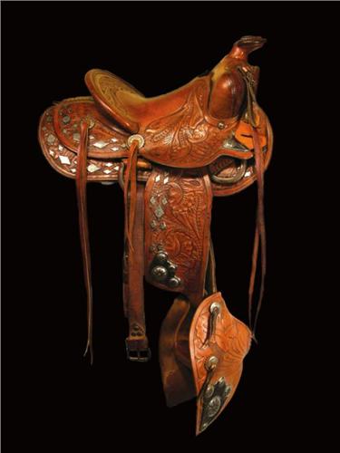 N. Porter Company, Phoenix, AZ. Silver Mounted Parade Saddle. Fancy brown tooled leather, floral design with matching bridle. Small size made for cowgirl or young adult. Excellent condition.