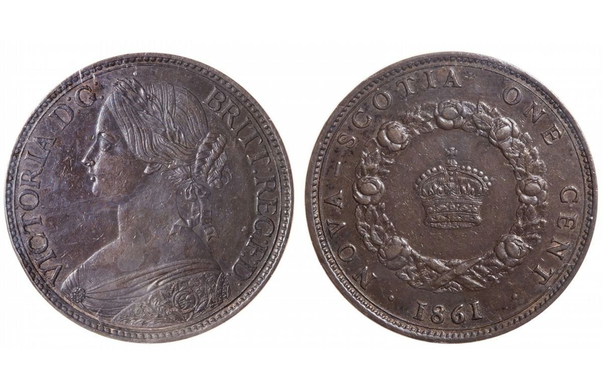 N.S. 1861 1¢ CH#NS7 ICCS SP55. Rare specimen issue, Chocolate brown.