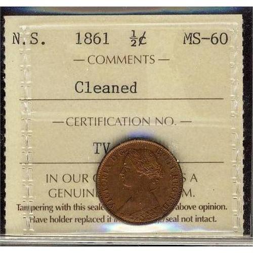 N.S. 1861 ½¢ ICCS MS60. Designated as cleaned.