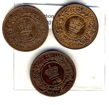 N.S. 1862 1¢. Lot of 3 coins. Fine in grade.
