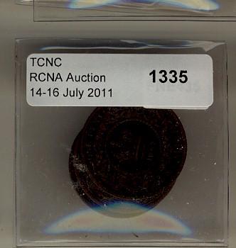 9. The cataloguer has taken every reasonable measure to ensure that all of the lots in this sale are as described and genuine. All raw coins and banknotes have been graded by the cataloguer or the auction house which represent our best professional opinion. To grade coins and banknotes, we use Canadian grading standards, 31 years of experience and good conscience. Grading is a subjective description in the opinion of the cataloguer or the auction house. Among experts there are often differences of opinion on the grading and the eye appeal of a coin. The strike and the state of preservation are often debated. TCNC acts as an agent between consignors and buyers. TCNC does not guarantee that any coin or banknote catalogued will meet the standards, or the grade, of any third party grading companies. No warranty, whether impressed or implied.