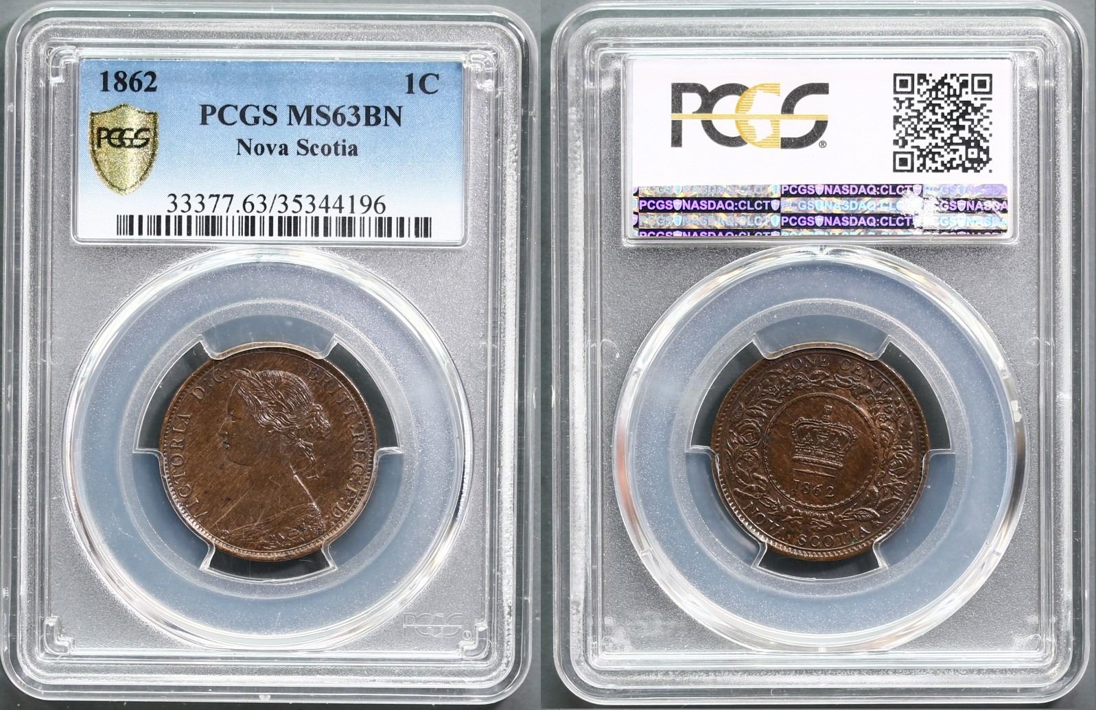 N.S. 1862 1¢ PCGS Choice Mint State-63. Lustrous brown with nice fields. Among the finest known example. The second best example seen and handled by TCNC. RARE.